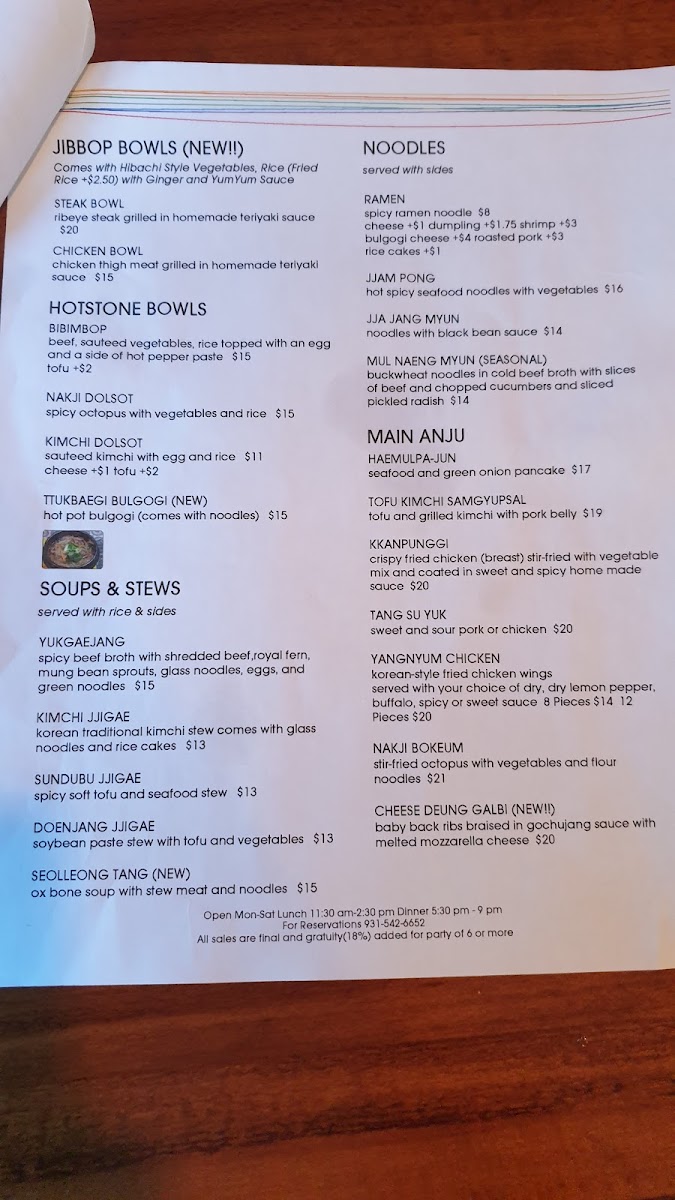 Welcome to JibBop Grill, an extraordinary destination for Korean BBQ lovers nestled at 132 University Ave in Clarksville, TN. This charming eatery offers a tantalizing menu that showcases authentic flavors and fresh ingredients. The highlight is the Kimchi Bokeumbop—a savory kimchi fried rice topped with a fried egg and seaweed flakes, perfect at $17.99. If you're craving grilled options, indulge in their Gochujang Samgyupsal, featuring smoky pork belly, or the tender, stir-fried Bulgogi for just $18.99. For a lighter option, consider the Veggies Cupbop, packed with stir-fried vegetables and served with dumplings at $13.95. JibBop Grill prides itself on its warm atmosphere and attentive service, making every visit special. The exceptional blend of flavors, combined with friendly service, guarantees a memorable dining experience that draws diners back time and again.